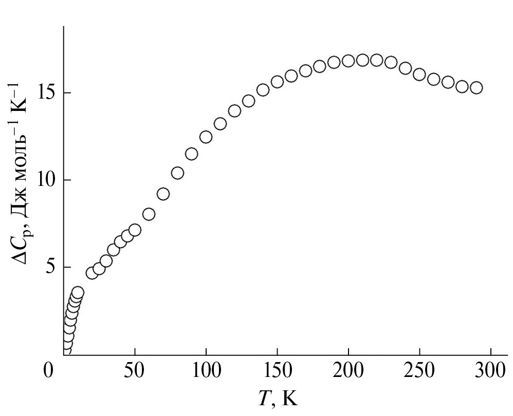 для области температур 0–300 K приведена на рис. 5. Определять вид аномалии при температурах выше 300 K не имеет смысла из-за высокой погрешности метода ДСК, применяемого для измерений теплоемкости в интервале 300–1800 K.