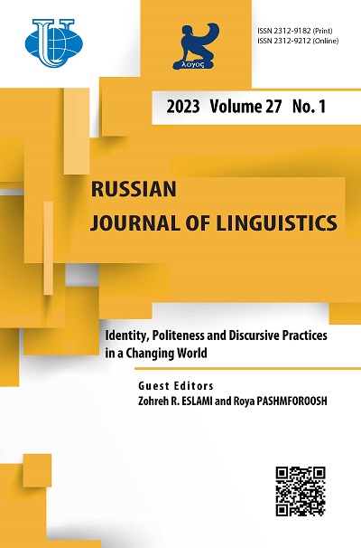 - Выпуск: Том 27, № 1 (2023): Идентичность, вежливость и дискурсивные практики в меняющемся мире