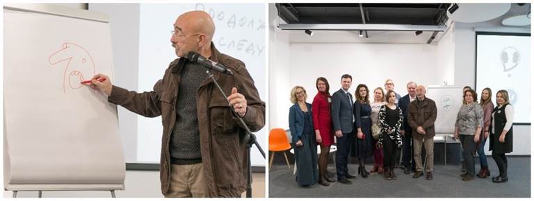 Мастер-класс Зураба Церетели на проекте «Сказать не могу молчать» в галерее Зураба Церетели (22 ноября 2018 года). Фото А.Ю. Щапина