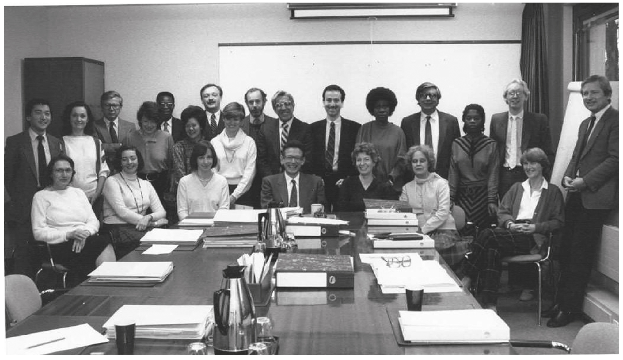 Picture of the staff of the WHO Division of Mental Health showing staff including P.V. Morozov, 1985 © Photo from personal archive of Professor Norman Sartorius