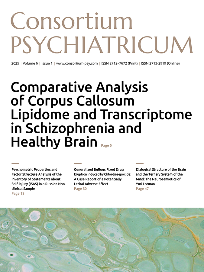 1. Sanna M. Dialogical Structure of the Brain and the Ternary System of the Mind: The Neurosemiotics of Yuri Lotman. Consortium PSYCHIATRICUM. 2025;6(1):CP15606. doi: 10.17816/CP15606