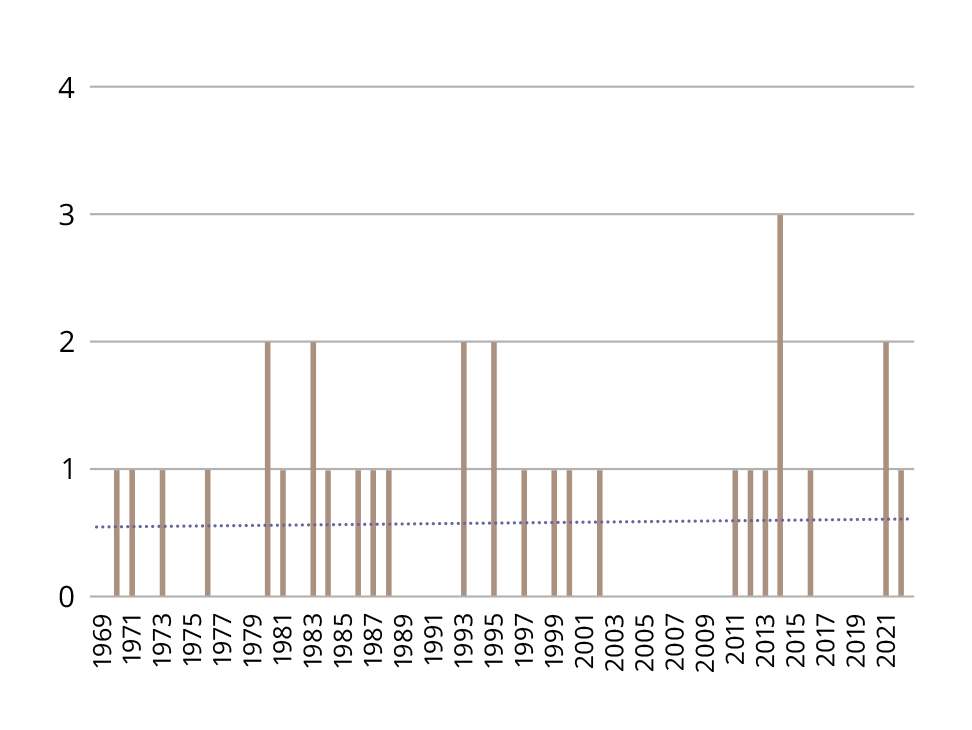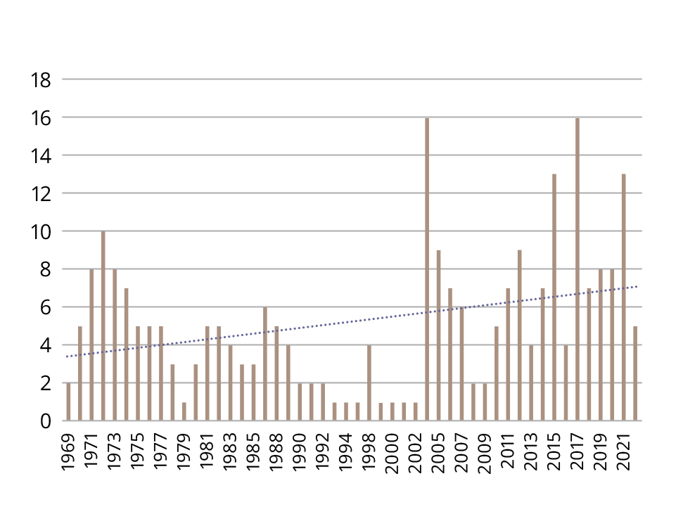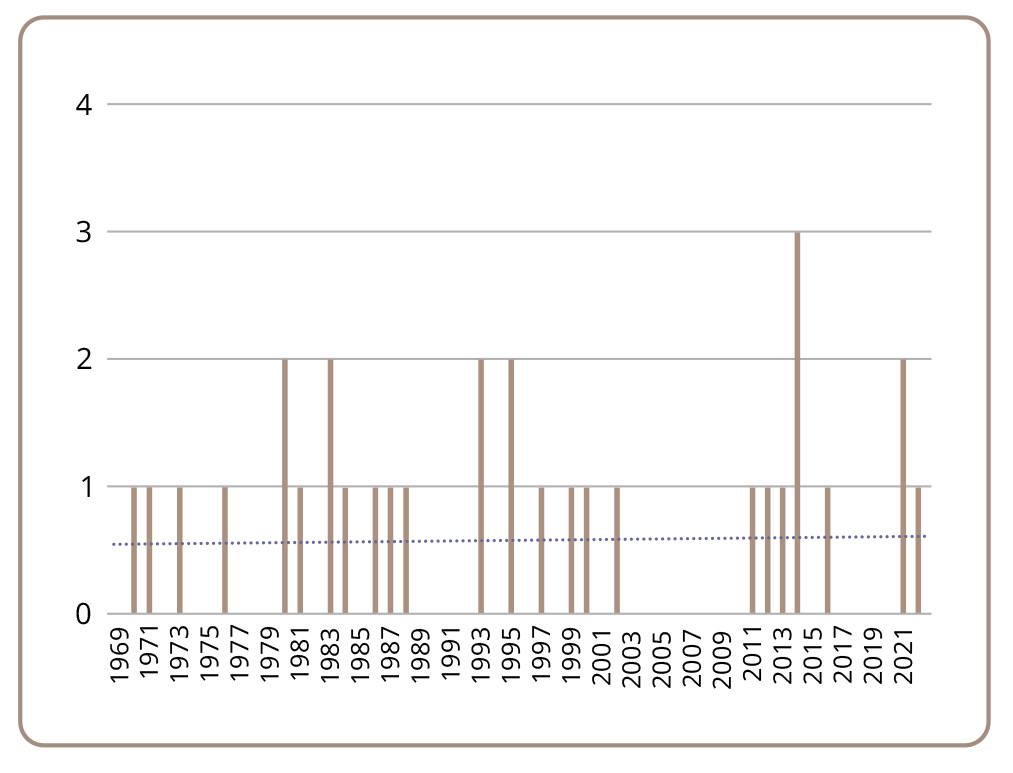 Figure 4. Citations of the paper by Lapin I.P. and Oksenkrug G.F. (1969) over time in broad-subject publications beyond neuroscience.
