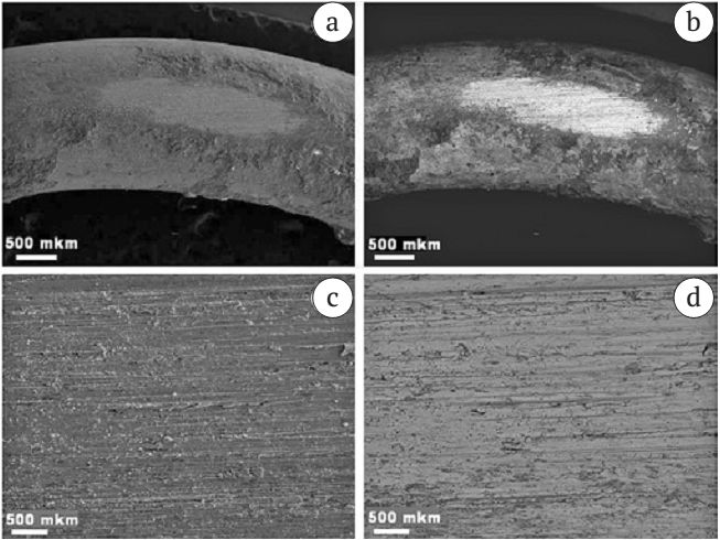 - Фрагмент браслета размером 64 × 5 × 1.5 мм (рис. 2; а); по составу почти нацело медный — Cu0.98—1 Sn0—0.02 (рис. 3; табл. 1). Под СЭМ характеризуется тонкопластинчатым строением (рис. 2; b; c); что является; вероятно; следствием ковки. Однородность нарушается множеством фазовых микровключений размером от 5—10 до 20—25 мкм; подразделяющихся по составу на свинцово-медно-мышьяково-сурьмяные Pb0.38—0.57Cu0.15—0.25Sn0—0.02As0—0.19Sb0.08—0.44S0—0.03 и свинцово-медно-никелево-сульфоантимонидные — (Pb1.16—1.35Cu0.74—1Ni0—0.06)2.15—2.22(Sb0.74—0.87S0.13—0.16).