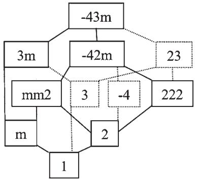 Fig. 2. Subgroups of the symmetry point group -43m. See text
