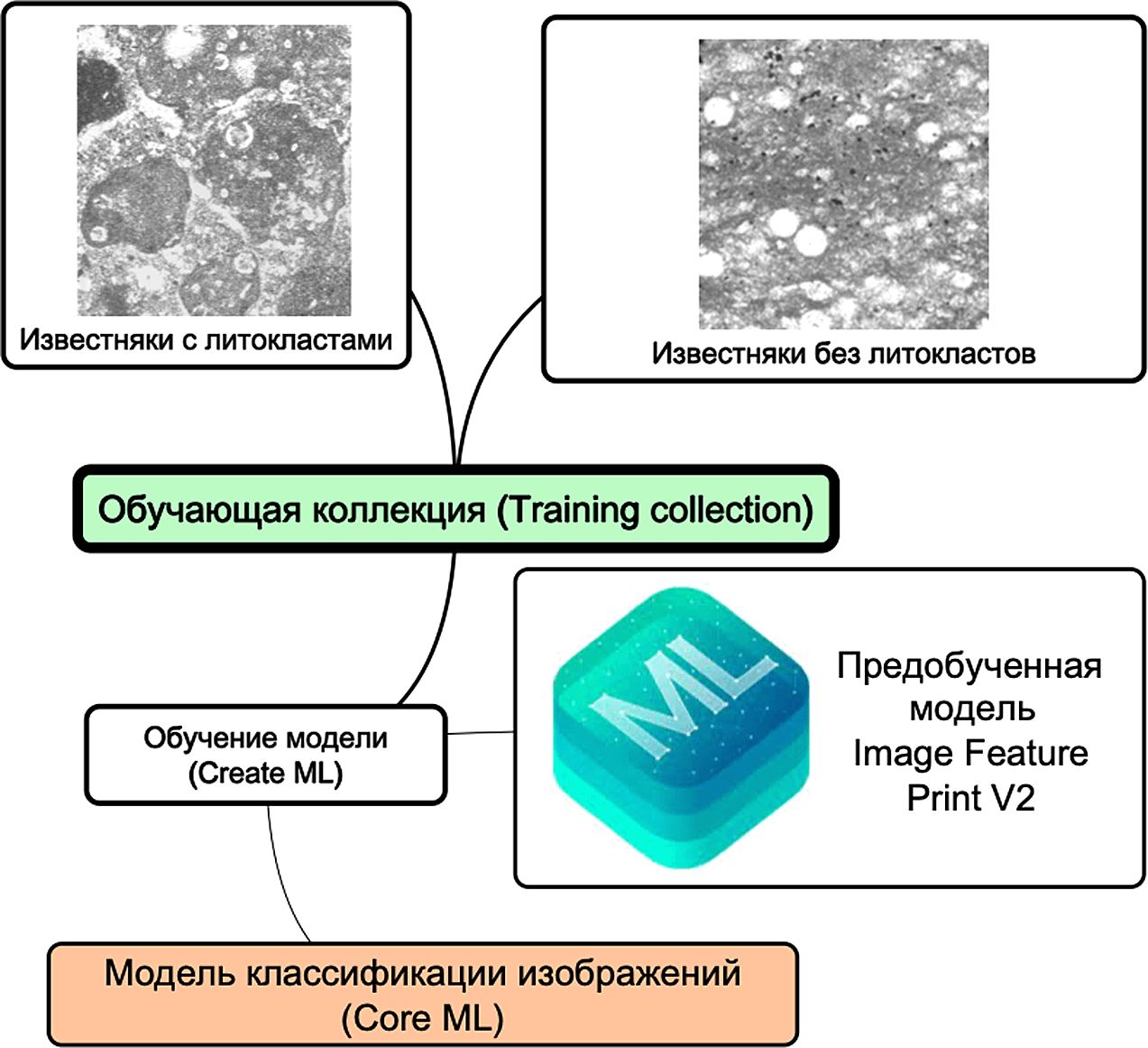 Рис. 2. Схема построения модели классификации изображений шлифов карбонатных пород