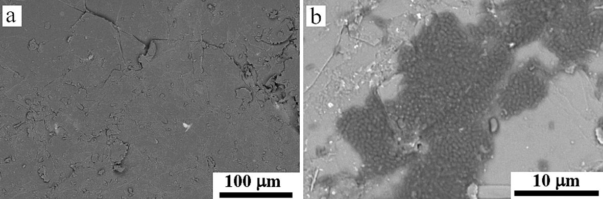 Рис. 4. Термовермикулит без бактерий (a); колонии углеводородокисляющих бактерий на поверхности термовермикулита (b)