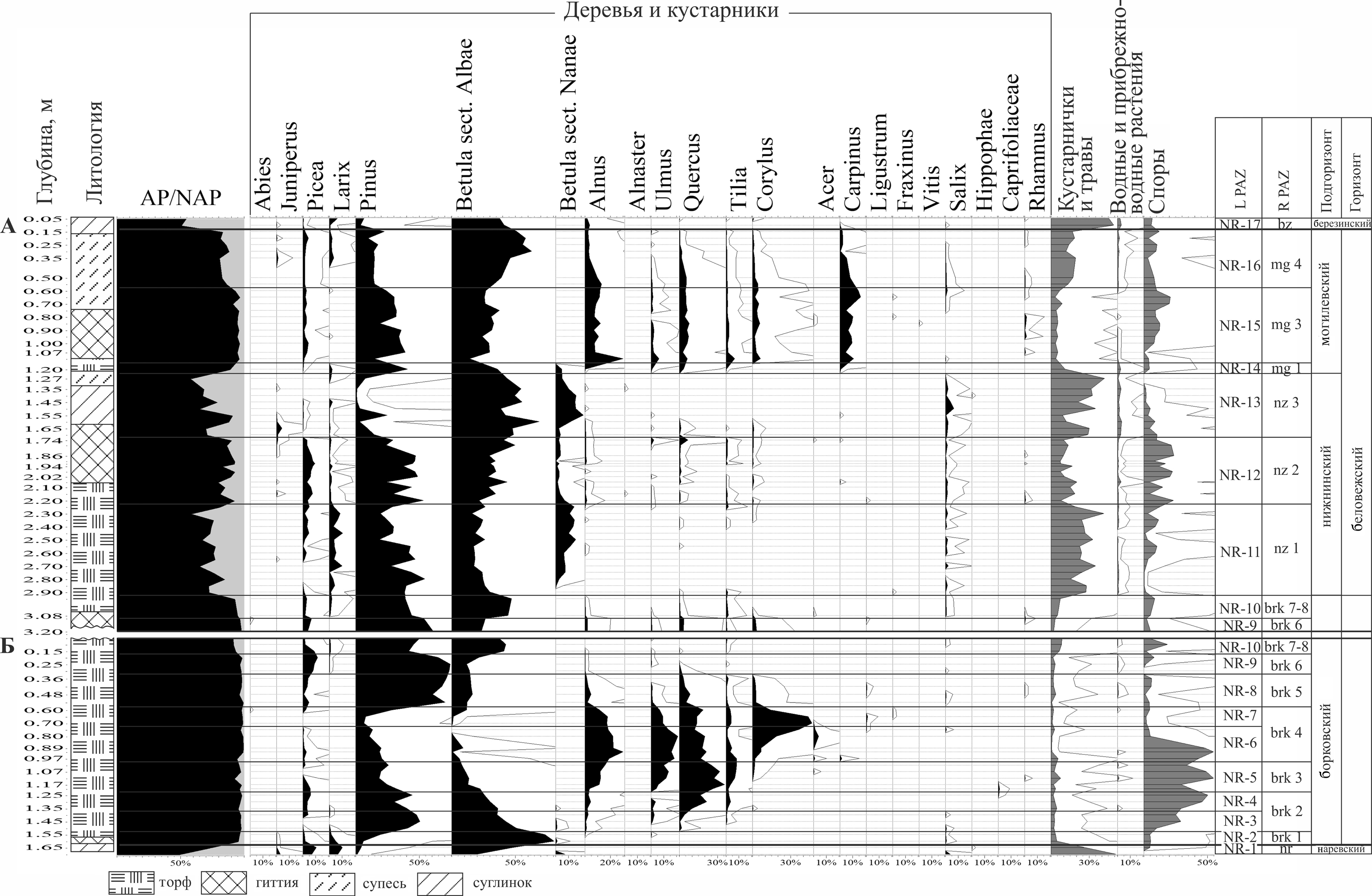 четвертичная / Quarternary | плейстоцен / Pleistocene | средний / Middle | березинский / Berezinian | bz-s-1 | NAP–Betula–Larix | |