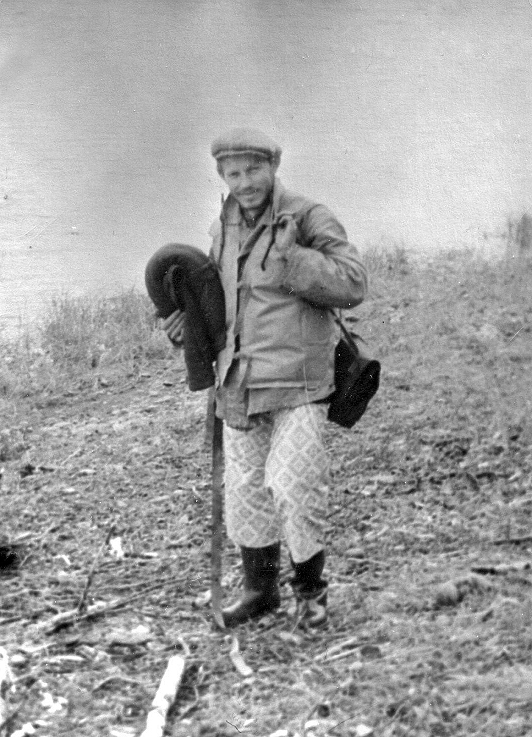 On the Lyadgey-Yaha River. Laboratory assistant L. Morokhina and worker Lyonya are near Vladimir, 1974