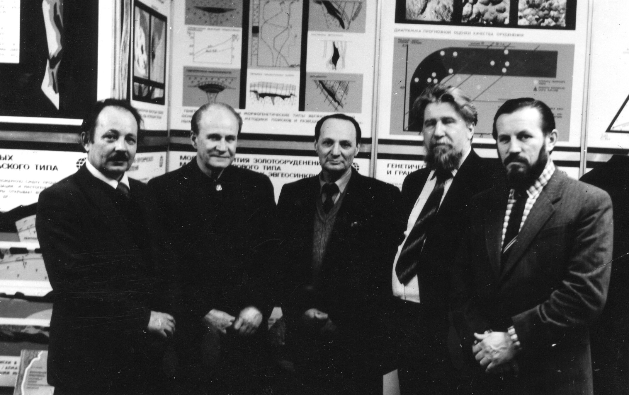 At the session of the Presidium of the Academy of Sciences of the USSR. From left to right: Academicians N. P. Yushkin and B. S. Sokolov, D. Sc. I. V. Fishman, D. Sc. V. A. Dedeev, Cond. Sc V. S. Tsyganko. Sverdlovsk, 1987