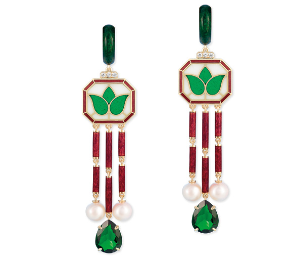 Серьги «Тюльпаны зеленые» из коллекции «Самарканд» (2018). Золото, бриллианты, изумруды, жемчуг. Автор: Ильгиз Фазулзянов