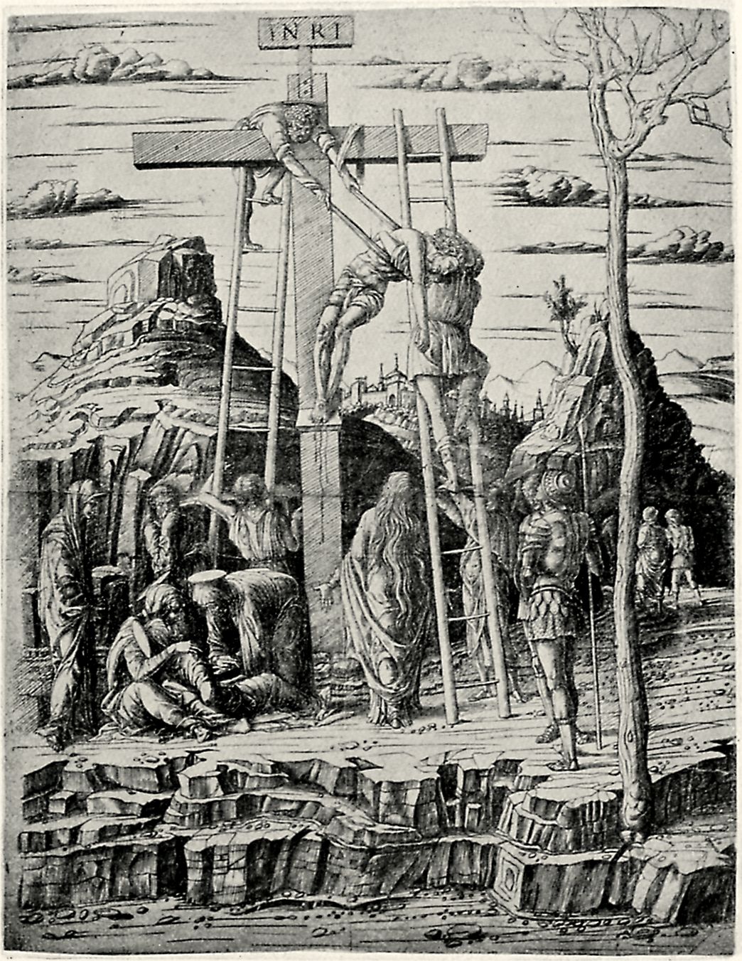 Рис. 4. Гравюра школы Андреа Мантеньи «Снятие с креста». 1490–1506 гг. Резцовая гравюра на меди. 45х36,2 см. Девонширская коллекция, Чатсворт, Калифорния, США