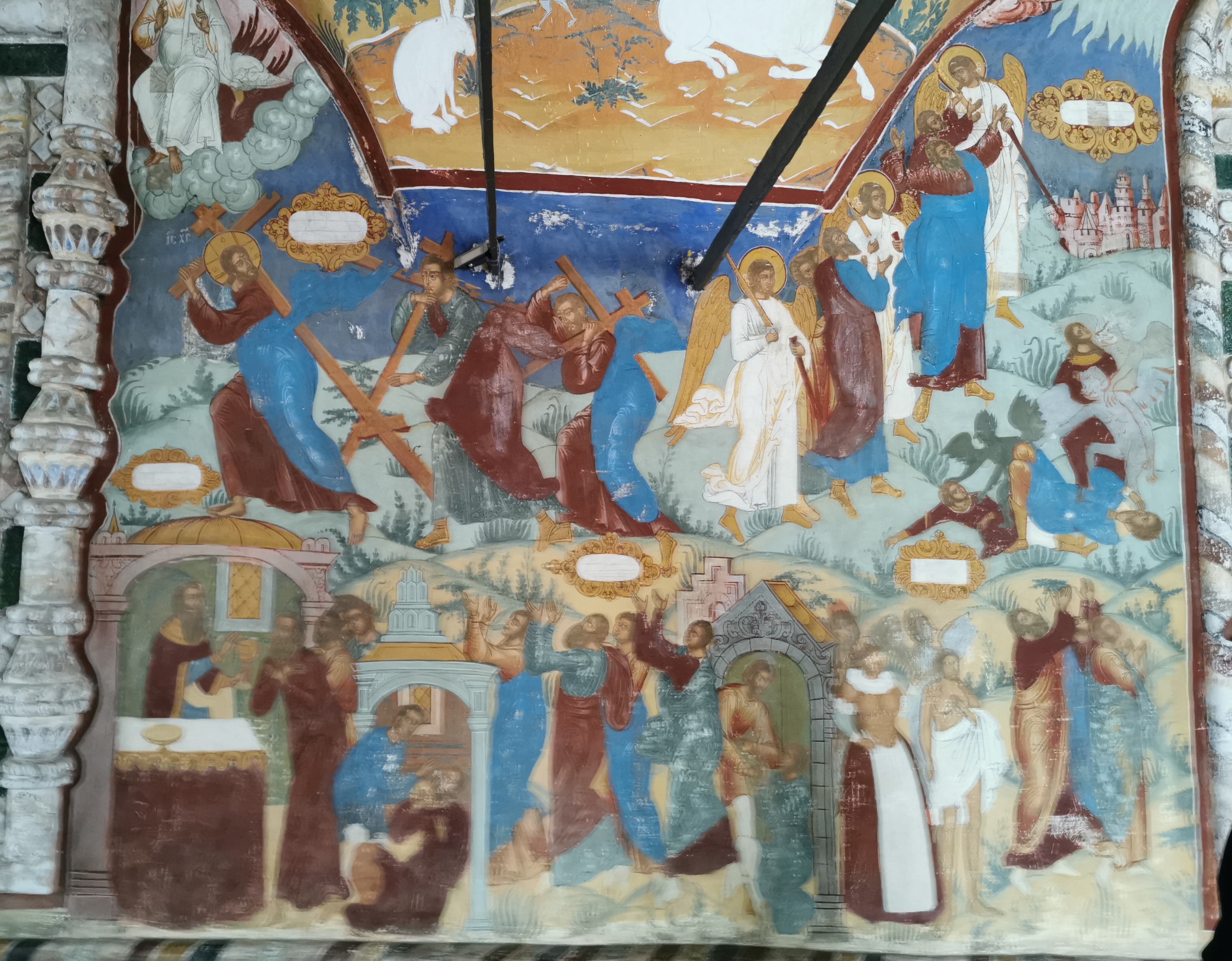 Определение источников необычных композиций «Отче наш» этого храма – самостоятельная исследовательская задача; существенно, что мы впервые имеем дело с циклом в виде единого фриза, последовательно размещенного в одном ярусе росписей.
