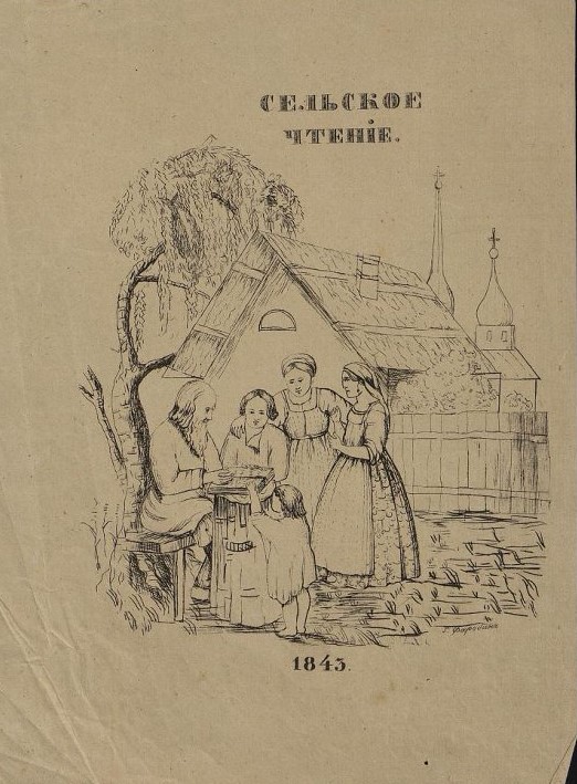 Ил. 10. Г. Фаробин. Сельское чтение. Обложка книги. 1843. Офорт, резец. Российская государственная библиотека
