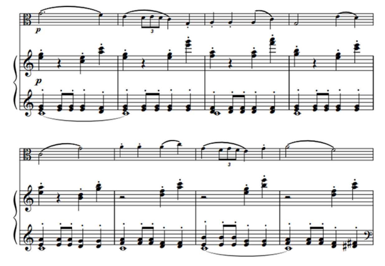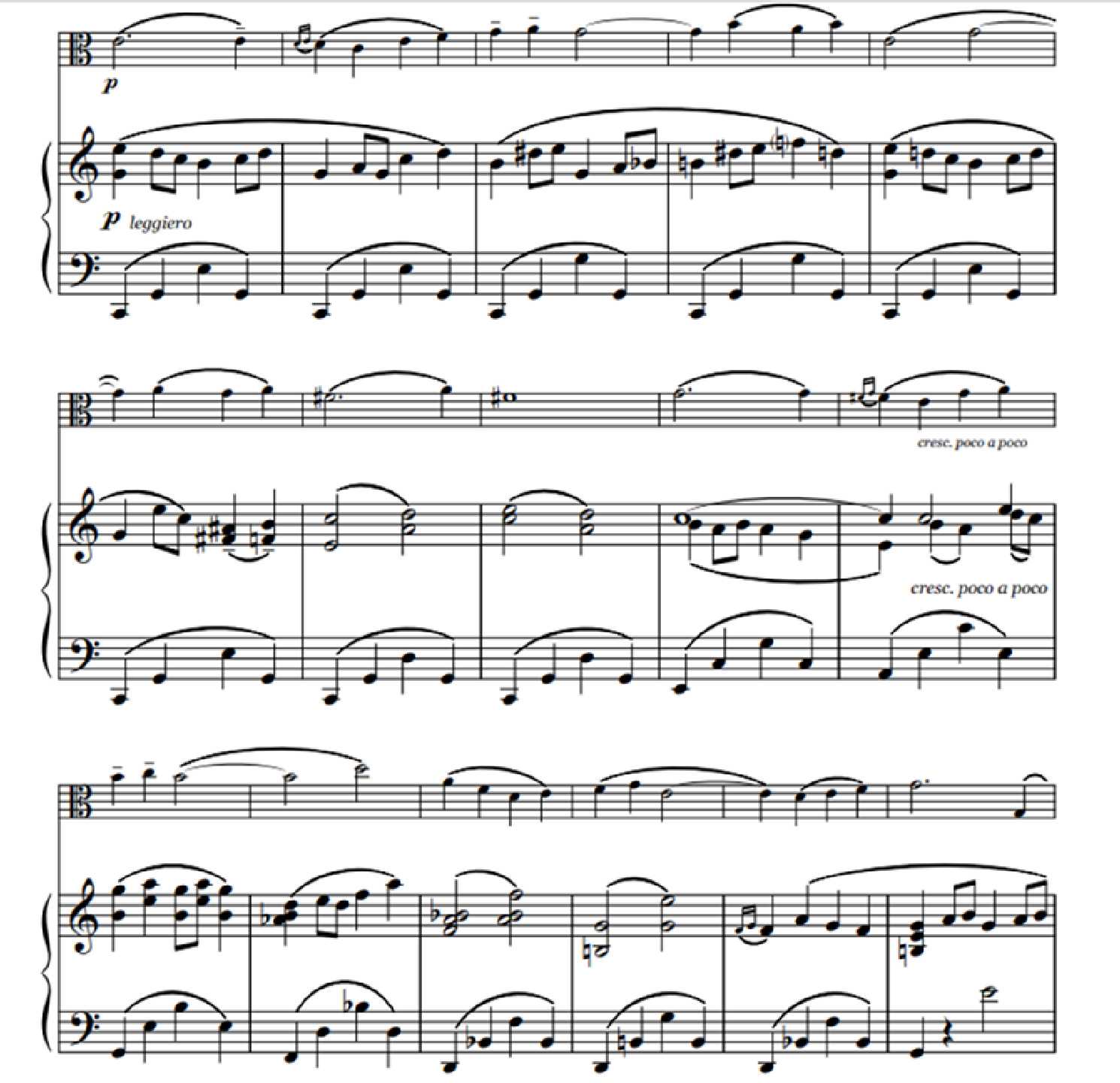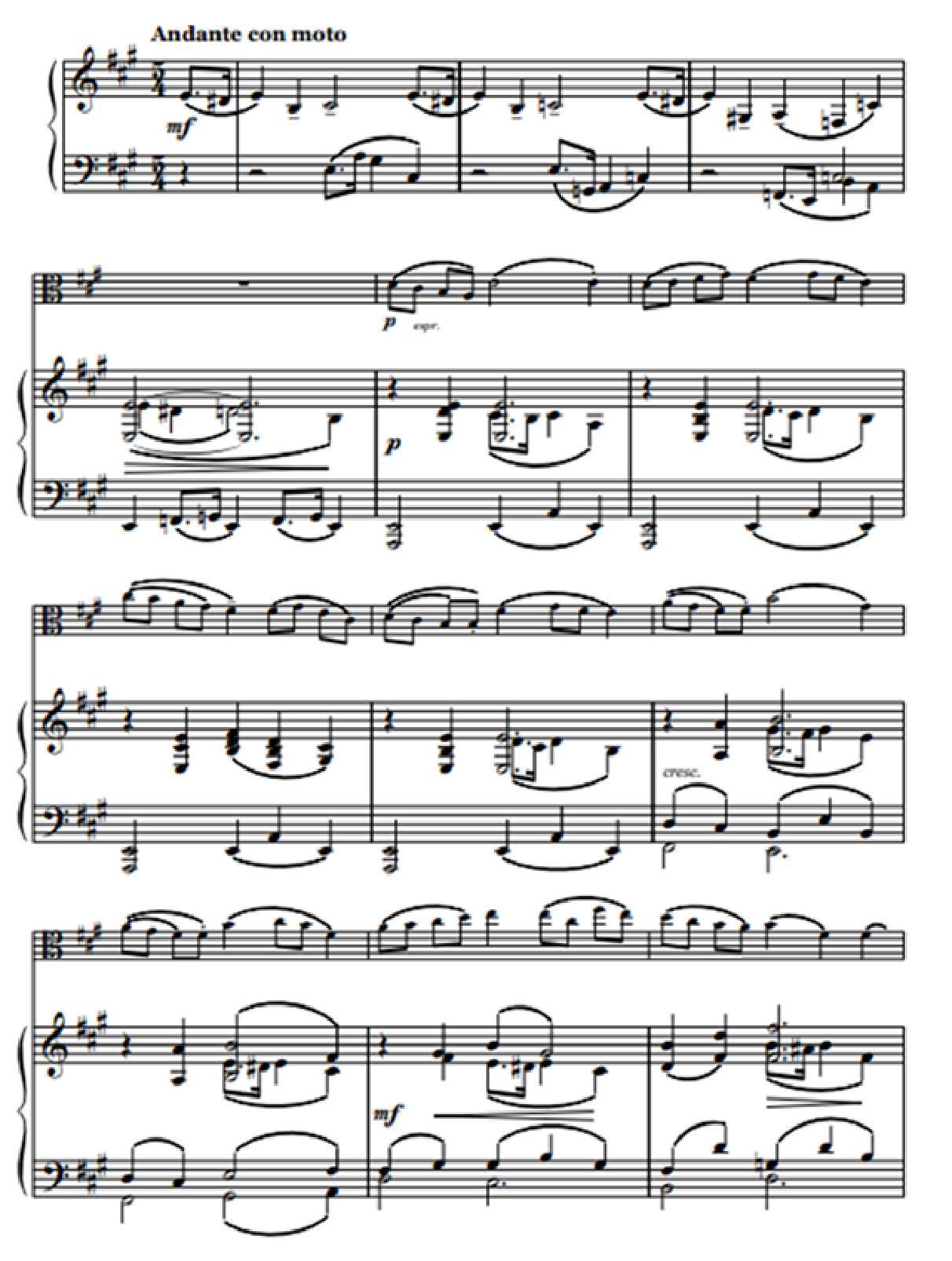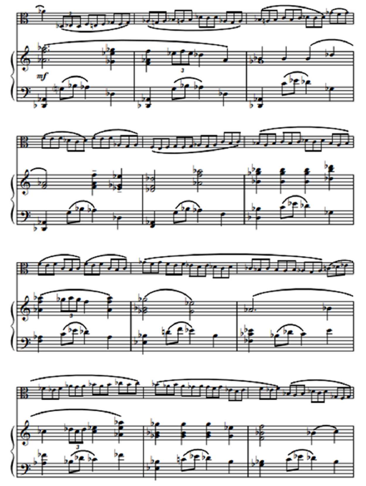 Пример 5. В.Я. Шебалин. Соната для альта и фортепиано. Часть 1. Тема побочной партии, т. 58-73: