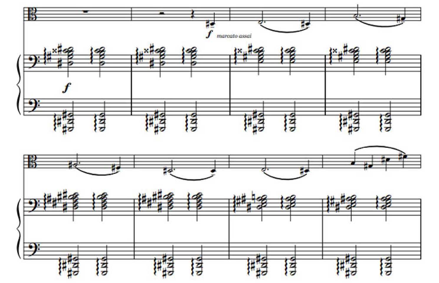 Пример 15. В.Я. Шебалин. Соната для альта и фортепиано. Часть 3, т. 512-523: