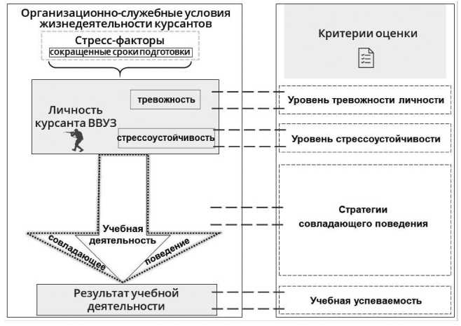 Данные положения легли в основу исследовательской модели особенностей совладающего поведения у курсантов военного вуза с разным уровнем учебной успеваемости (см. Рис. 1).