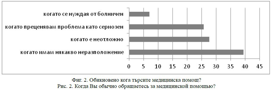 Същевременно се вижда, че при половината от респондентите, по една или друга причина, търсенето на медицинска помощ е сведено до случаите, когато има неотложен или сериозен проблем (фиг. 2).