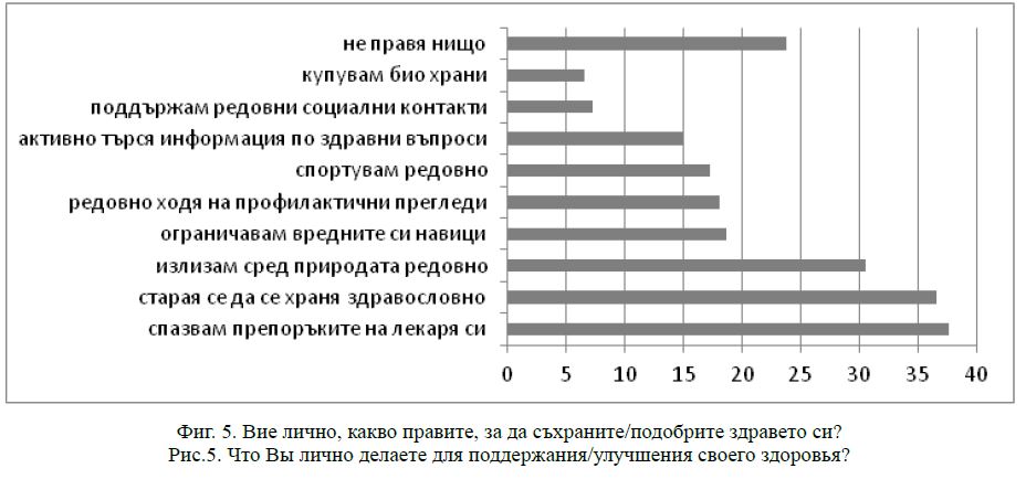 Ясно е, че държавата е далеч от това да обезпечи качествено и достъпно здравеопазване, но следва да се види и какво е активното поведение на отделния човек, насочено към съхранение/подобрение на собственото здравословно състояние (фиг. 5).