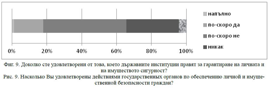 Същевременно от изследването се вижда силната неудовлетвореност от правеното от държавните институции за гарантиране на безопасността на хората (фиг. 9).
