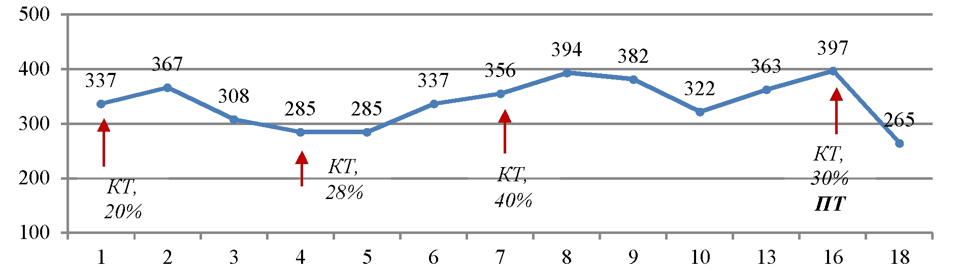 Появлению данного осложнения не предшествовали какие-либо инвазивные манипуляции в области дыхательных путей, пищевода, пациент не находился ИВЛ. Однако возникновение ПТ коррелирует усугублением дыхательной недостаточности, снижением SpO2 (рис. 4) с пиком ЛДГ (до 397 ед/л), уровень которого прогрессивно возрастал на протяжении всего лечения (рис. 5).
