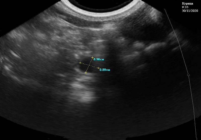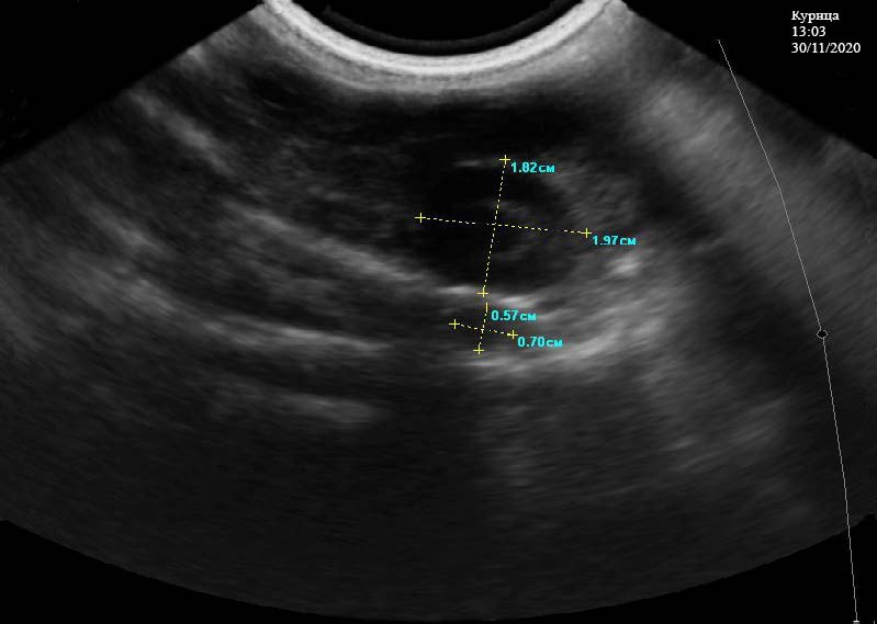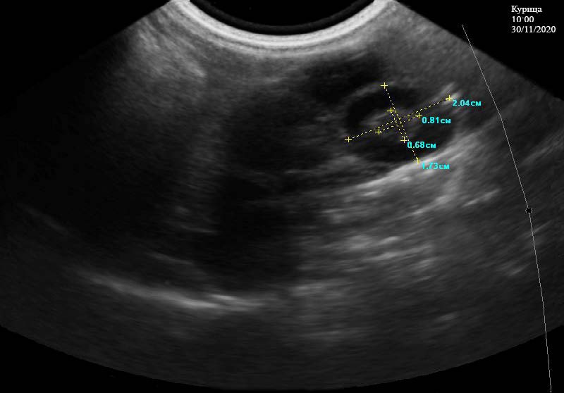 Рис. 1. Ультразвуковое исследование почек у курицы кросс «Хайсекс белый». 9:30 ч. 30.11.2020 г.