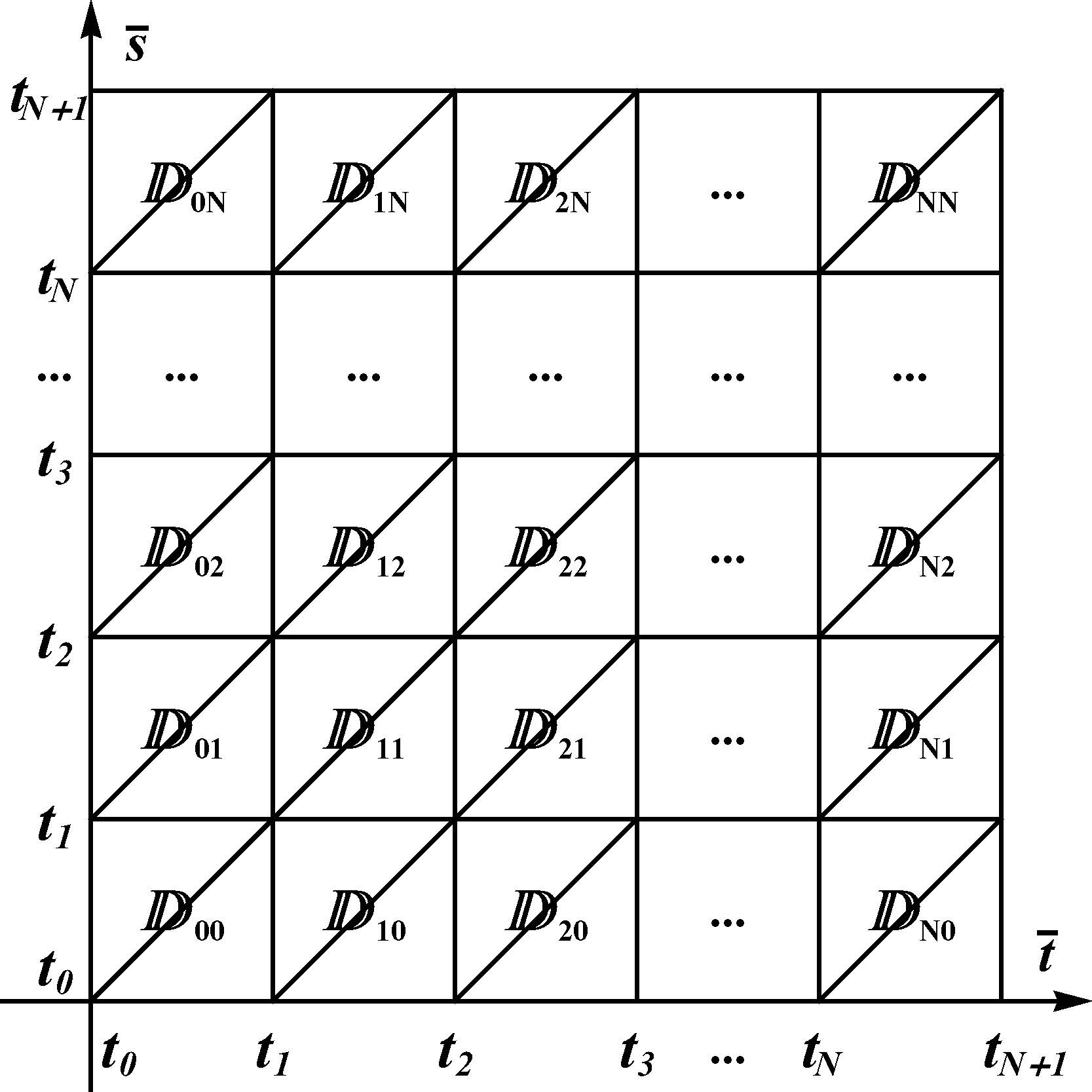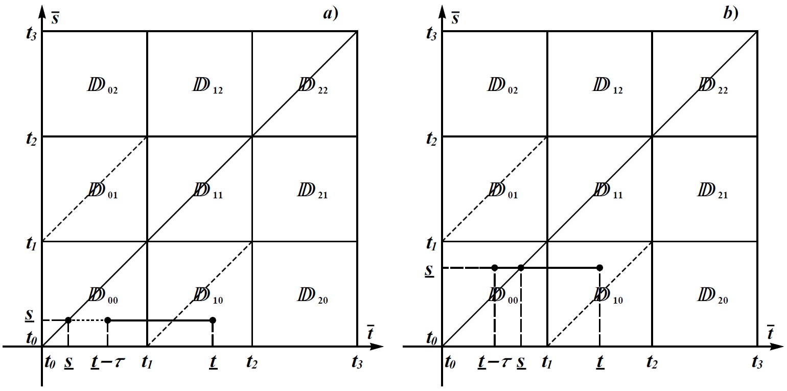 - построение сетки на плоскости переменных , в узлах которой и будут вычисляться значения ковариационных функций (это необходимо для их расчета на участках при различных на основе формирования начальных условий в точках с помощью уже найденных значений в точках ;