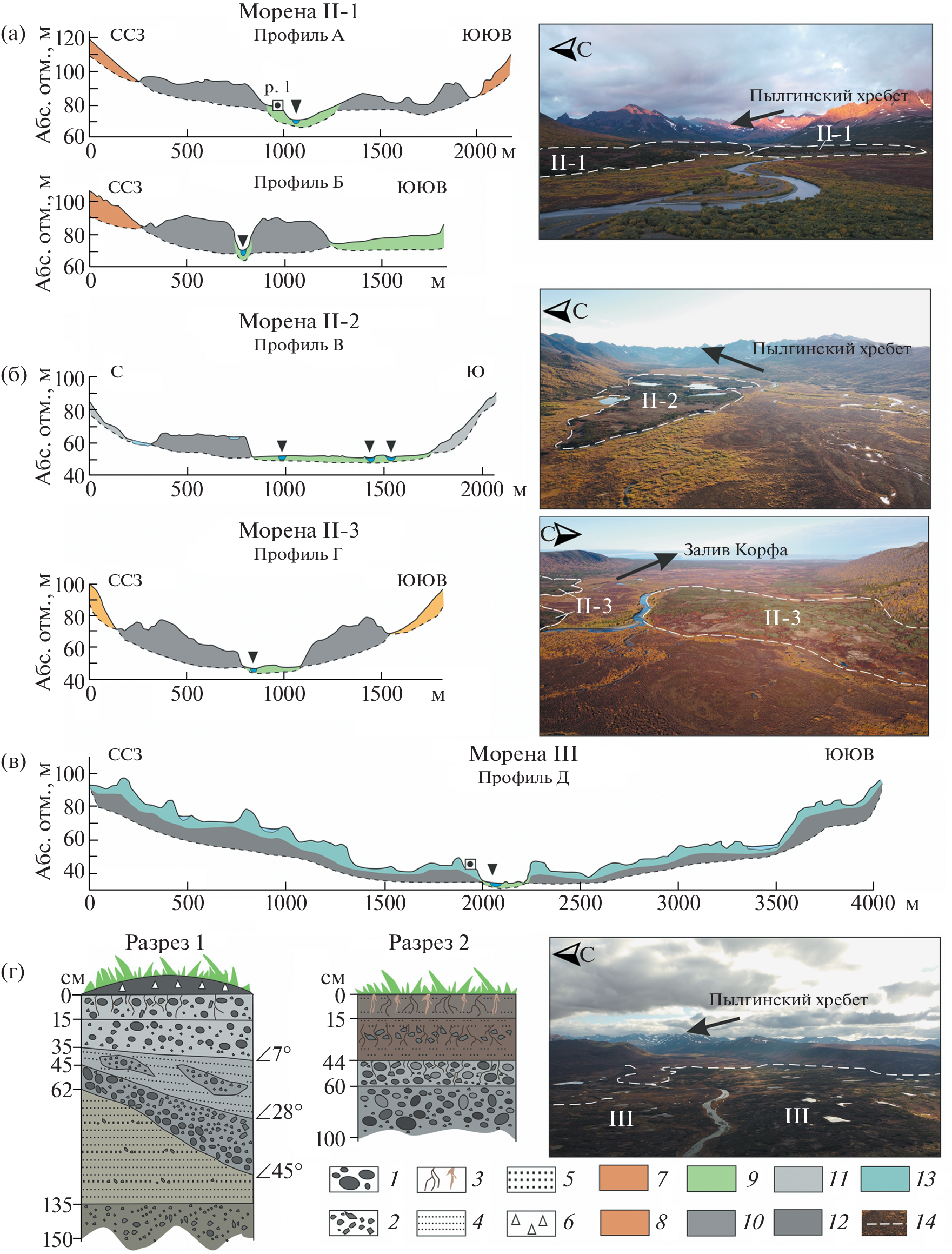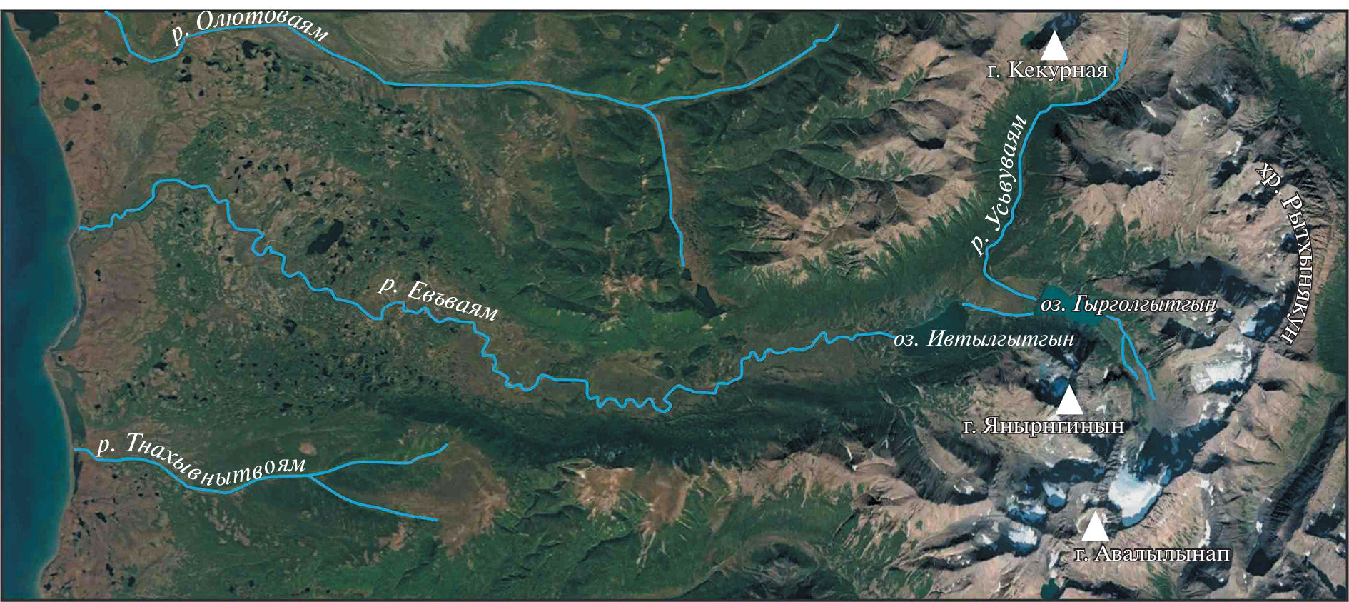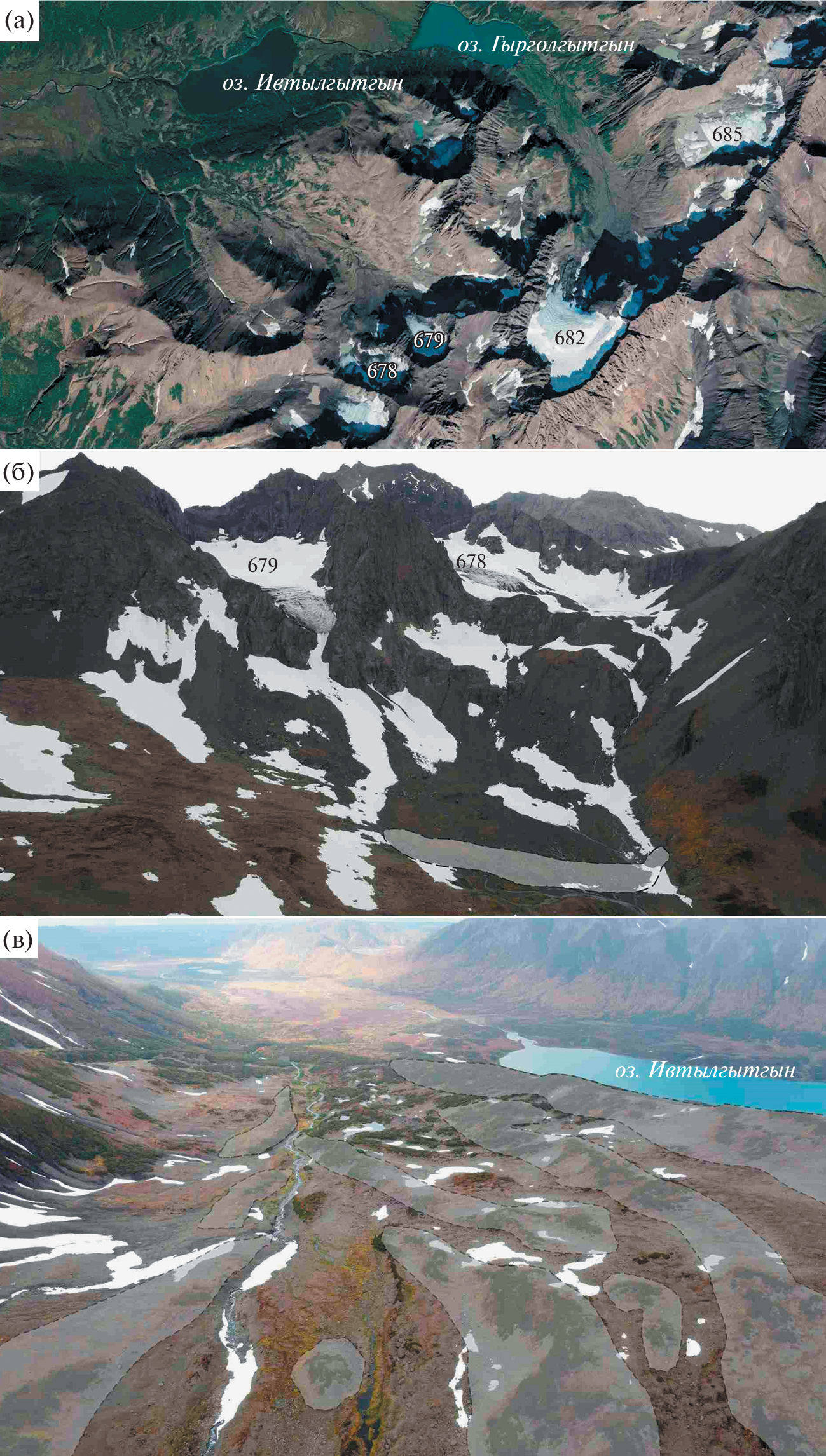 Based on the interpretation of satellite images and field observations, three moraines of different ages and morphology were identified in the valley of Ev’vayam River. The oldest, poorly preserved and significantly eroded moraines are located in the lower reaches of the Ev’vayam River near the Bering Sea coast. A well expressed in relief complex of younger moraines consisting of three better-preserved moraine ridges (45, 62–72 and 87–95 m a. s. l.) with thin soil cover is distinguished in the middle reaches of Ev’vayam River. The youngest moraines are found in the upper reaches of the Ev’vayam River Valley at elevations of 240–320 m a. s. l., where they form longitudinal ridges, or “tongues”. Based on the preservation degree, morphology and size of the investigated glacial complex, and published data on adjacent areas, the glaciation of the territory had a mountain-valley character. The glacier apparently reached its maximum size at the beginning of the Late Pleistocene, when it moved beyond the valley of the Ev’vayam River to the coast. The moraines in the central part of the valley and in its upper reaches were formed by much smaller glaciers during the end of Late Pleistocene. The recharge area of glaciers during this period was limited to a series of glacial cirques and kars in the central part of Pylgynskiy Range. Currently, small glaciers are present in cirques at elevations from 410 m to 720 m a. s. l., and continue to form modern moraines.