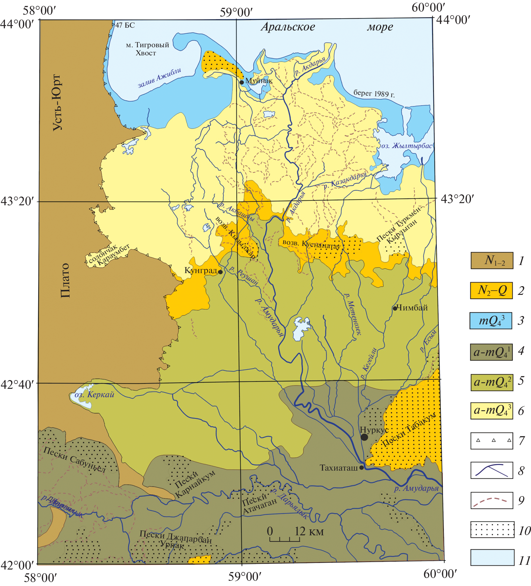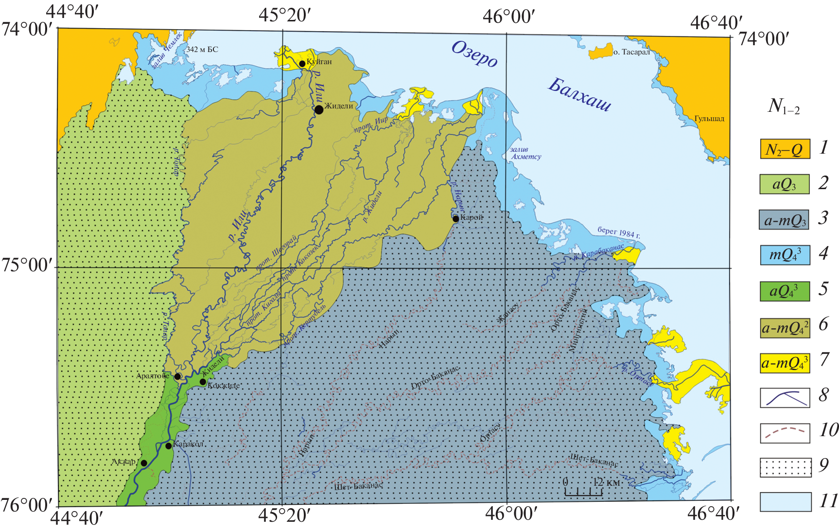 The study of the geomorphological and sedimentary systems forming at mouth of large rivers flowing into the inland seas and lakes of the arid zone shows that they have passed a long evolutionary path of development, repeatedly accumulating and reworking alluvial deposits depending on the position of the receiving reservoir level. Following the level fluctuations, the rivers moved their deltas, Pleistocene relics of which are found in the range of absolute marks from +50 to –20 m on the shores of the Caspian Sea, from +50 to 110 m of the Aral Sea and from +370 to 400 m of Lake Balkhash.