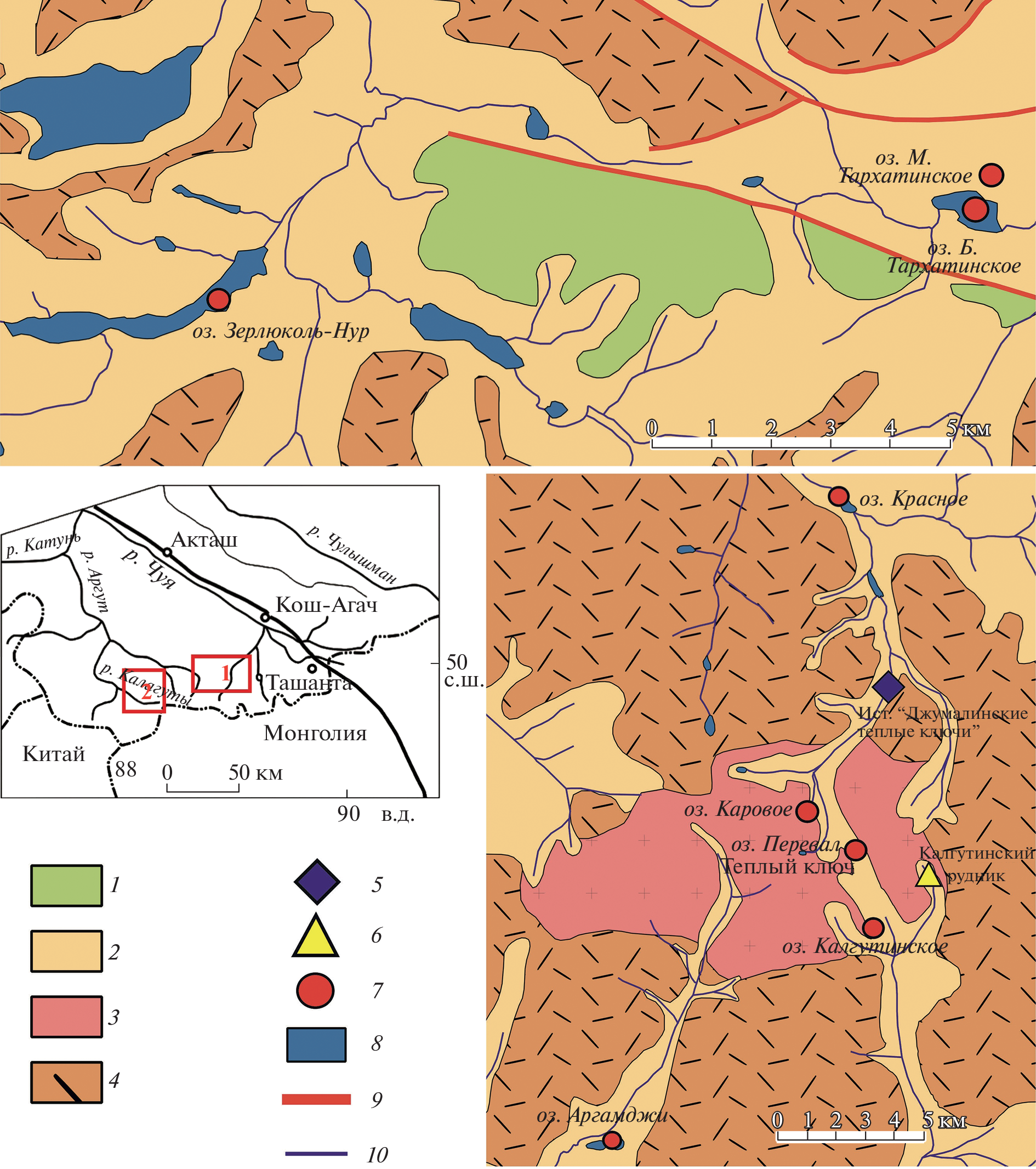 - Rengarten P.A. (Eds.). (1959). Geologicheskaya karta: M-45-XXII, XXVIII. Geologicheskaya karta SSSR. Seriya Gorno-Altaiskaya m-ba 1:200 000 (Geological map: M-45-XXII, XXVIII. Geological map of the USSR. Series Gorno-Altai scale 1 200 000). Moscow: Gosgeoltekhizdat (Publ.). 1 p. (in Russ.)