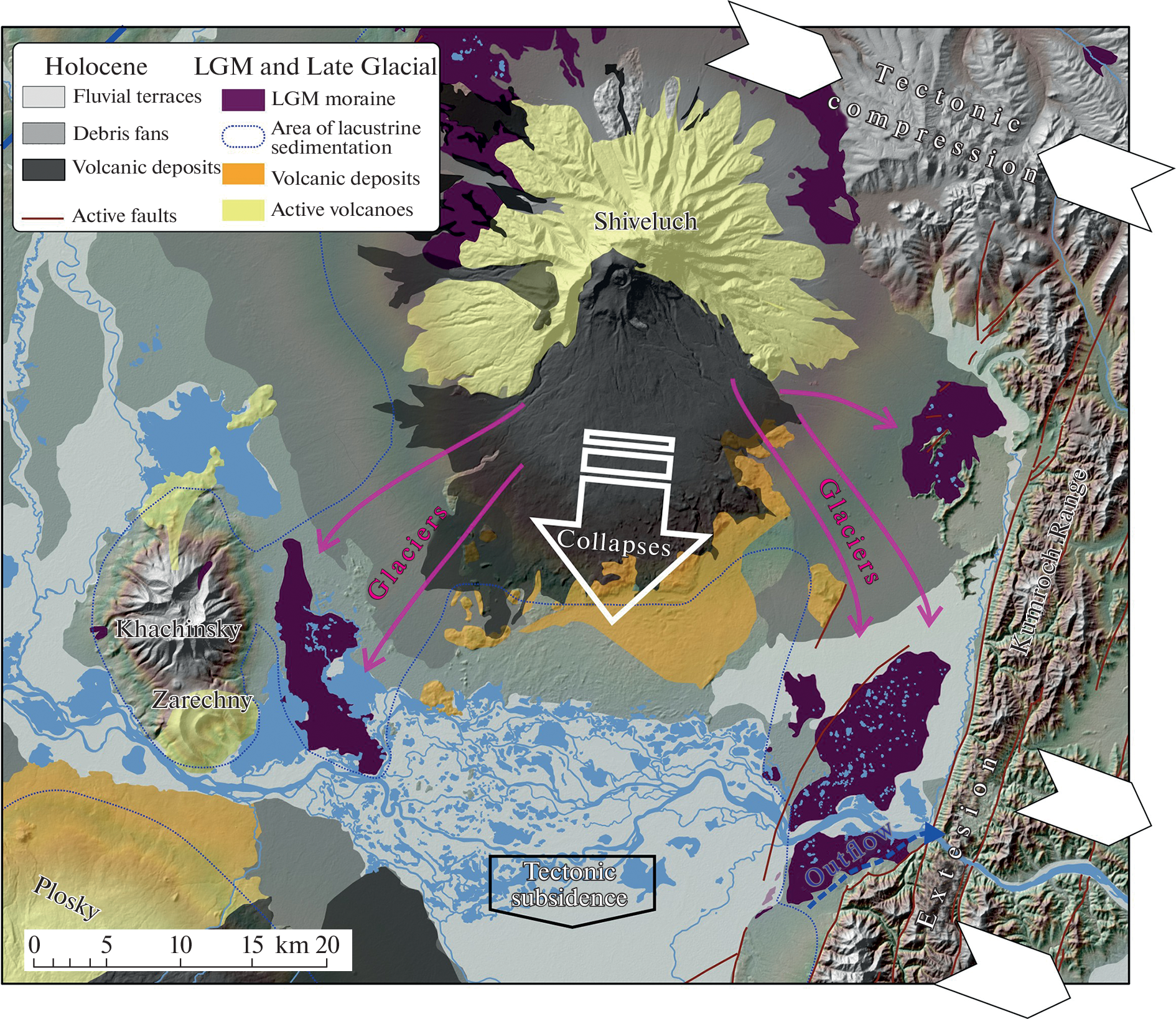 - Kozhurin A., Zelenin E. (2017). An extending island arc: the case of Kamchatka. Tectonophysics. Vol. 706. P. 91–102. https://doi.org/10.1016/j.tecto.2017.04.001