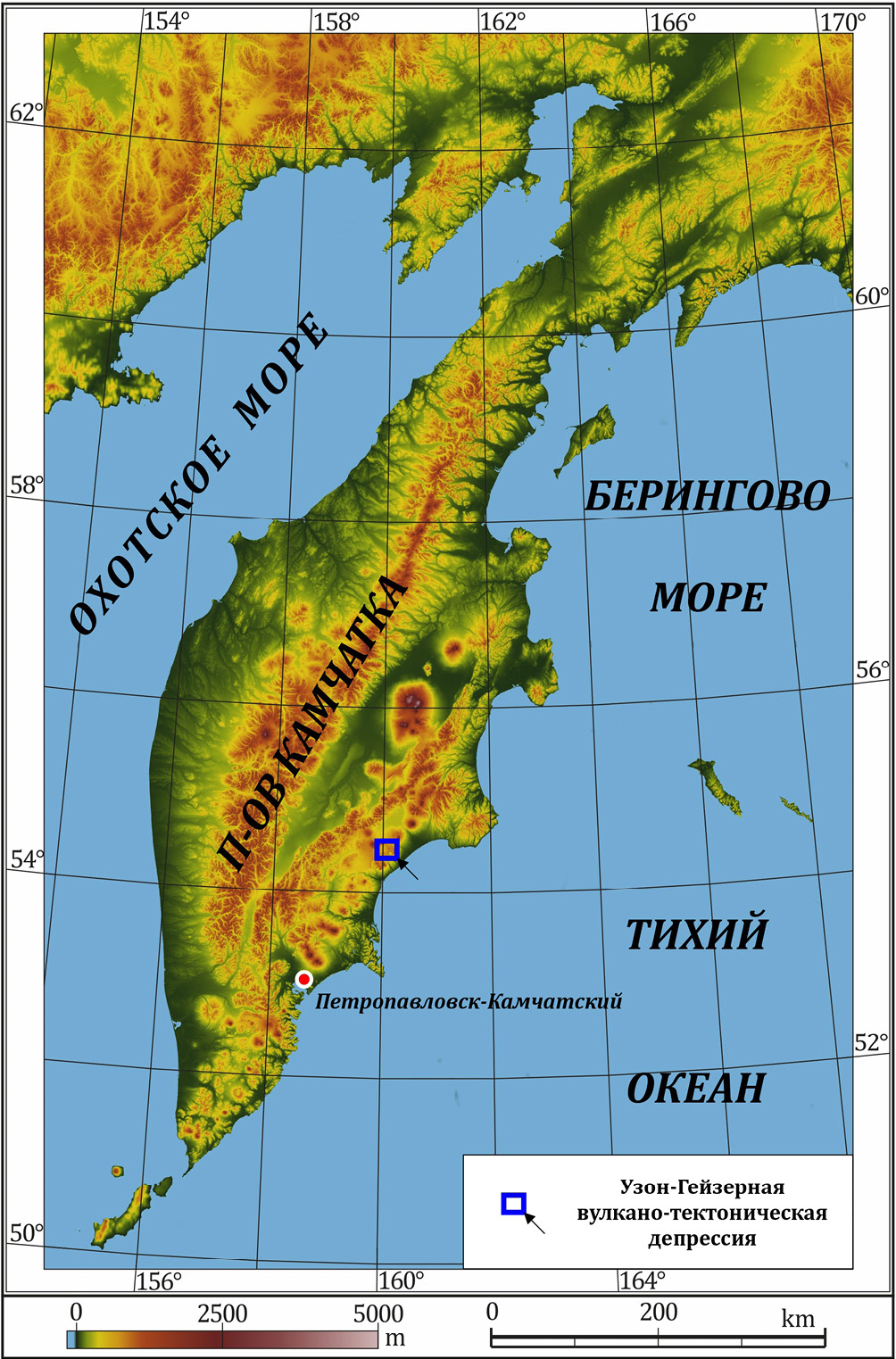 Рис. 1. Полуостров Камчатка и положение района исследований