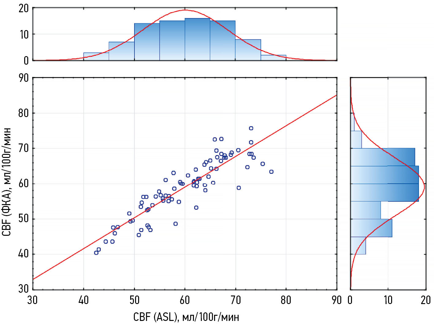 RESULTS: In the study 80 adults were examined using both methods. Non-contrast magnetic resonance imaging revealed mean perfusion values of 17.88 ± 2.39 mL/100g/min in white matter and 42.06 ± 7.13 mL/100g/min in gray matter, with total cerebral perfusion at 59.63 ± 8.56 mL/100g/min. Total cerebral perfusion calculated from phase-contrast angiography and arterial blood flow velocity was 58.96 ± 8.16 mL/s. A strong positive correlation was found between total cerebral perfusion values derived from non-contrast magnetic-resonance and phase-contrast angiography (r = 0.892; p < 0.001).
