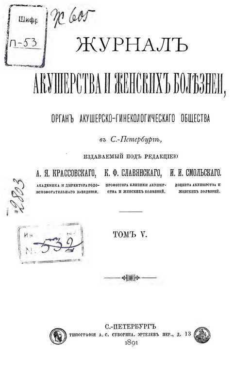 Journal of obstetrics and women's diseases. 1891;5(5-6):503-504