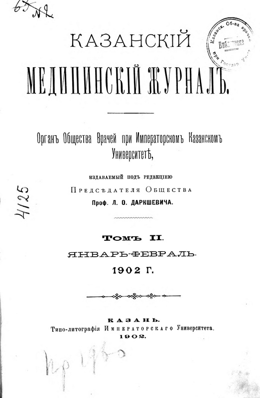 Казанский медицинский журнал. 1902;2(1-2):1-16