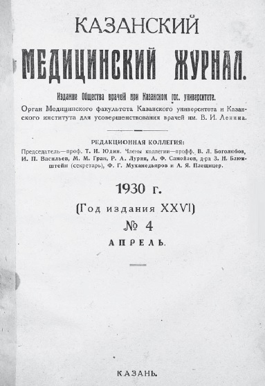 Meetings of medical societies. Society of Physicians at Kazan University. General Sessions Session 18 March 1930
