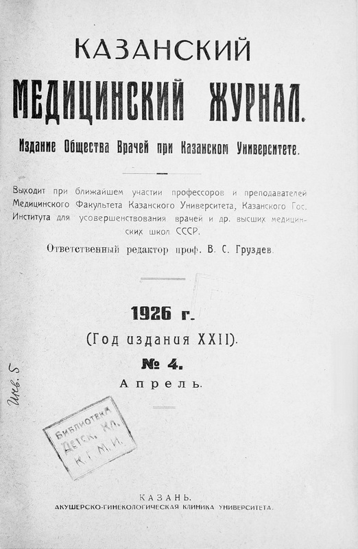 Осенью 1924 года проф. М. С. Малиновский предложил мне заняться определением патологическаго химизма желез с внутренней секрецией при некоторых гинекологических заболеваниях при помощи реакции Abderhalden’а. Как известно, самим Abderhalden’ом были с самого начала указаны два способа производства этой реакции: диализационный и оптический. Но первый из них был вскоре оставлен Abderhalden’ом, который нашел, что употребляемые при этом методе гильзы дают около 30% брака. Кроме того новейшие исследования Lüttge и Merz’а показали, что сама гильза может удерживать продукты расщепления белка, — факт, который в значительной мере обесценивает всю методику реакции.