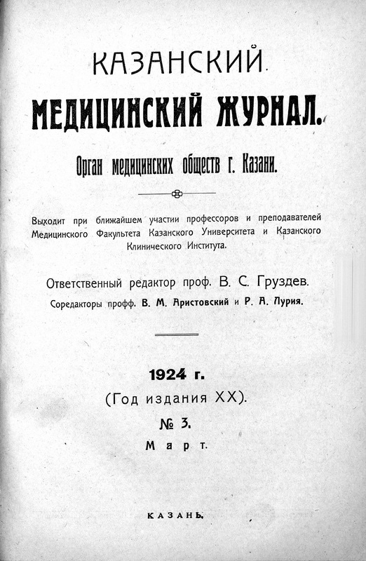 О влиянии инсулина на деятельность сердца (см. реферат в №6 Каз. Мед Журн., 1923г.), В. М. Коган (Врачебное Дело, 1923 г., № 24—26)