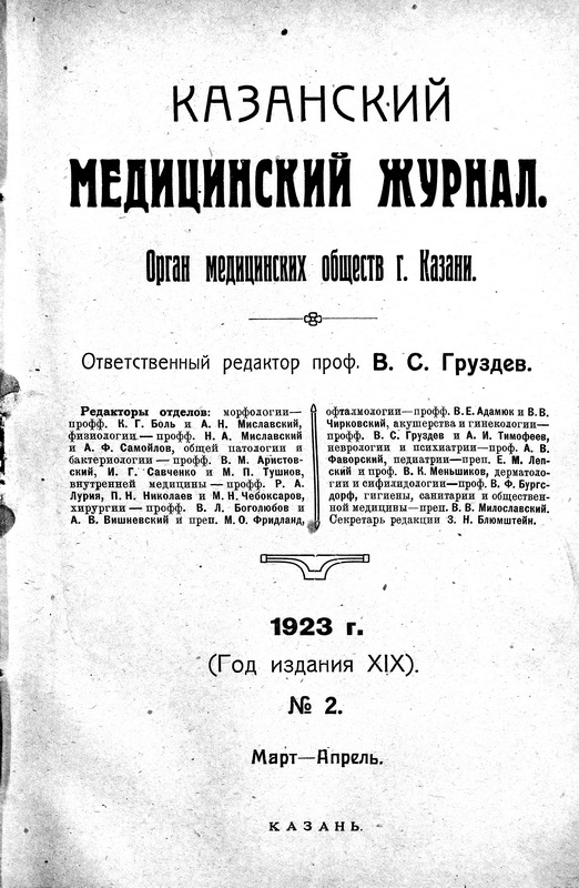 В. А. Оппель. Успехи современной хирургии. Изд. Гржебина. Петерб.—Берлин. 1922