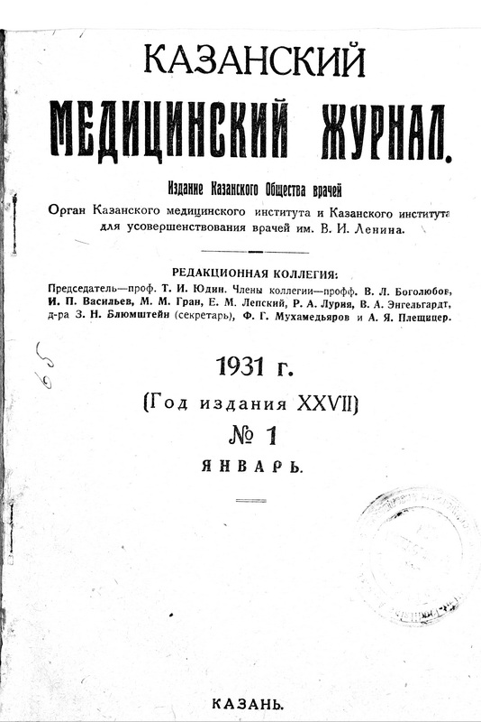 Общество врачей при Казанском университете. Хирургическая секция. Заседание 21 ноября 1930 г.