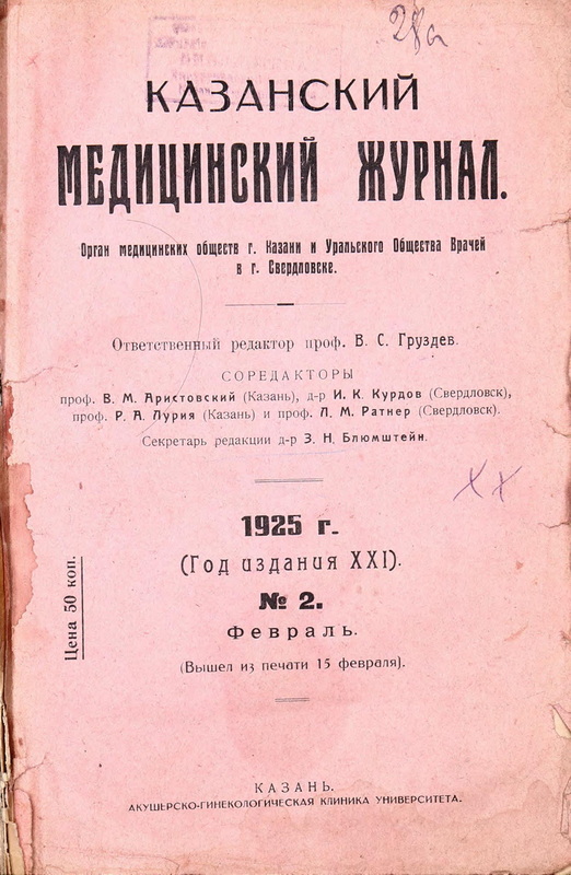 Society of Physicians at Kazan University. Vol. 21 No. 2 (1925)