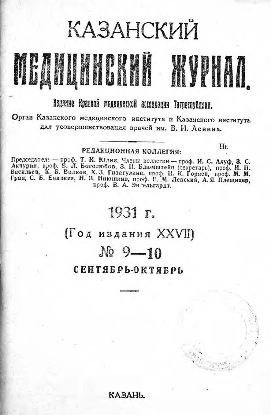 А. А. Вишневский и В. С. Зимницкий. К проблеме целостности животного организма. Заметки по корреляции желез внутренней секреции. С предисловием К. В Волкова (Ядрин), стр. 80, Татиздат, Казань, 1931- Цена 1 р. 10 к.