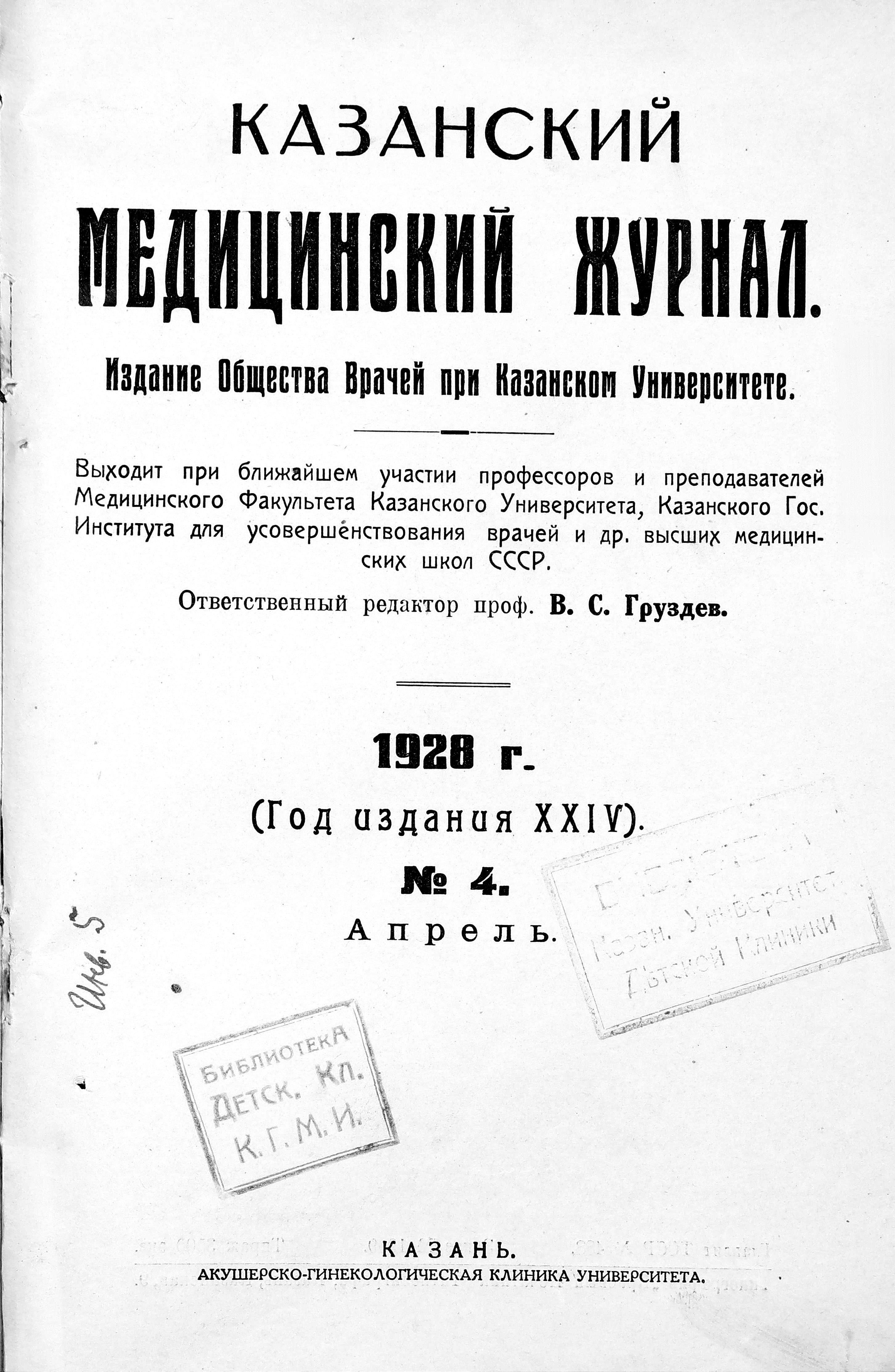 Society of Physicians at Kazan University. Vol. 24, No. 4 (1928)