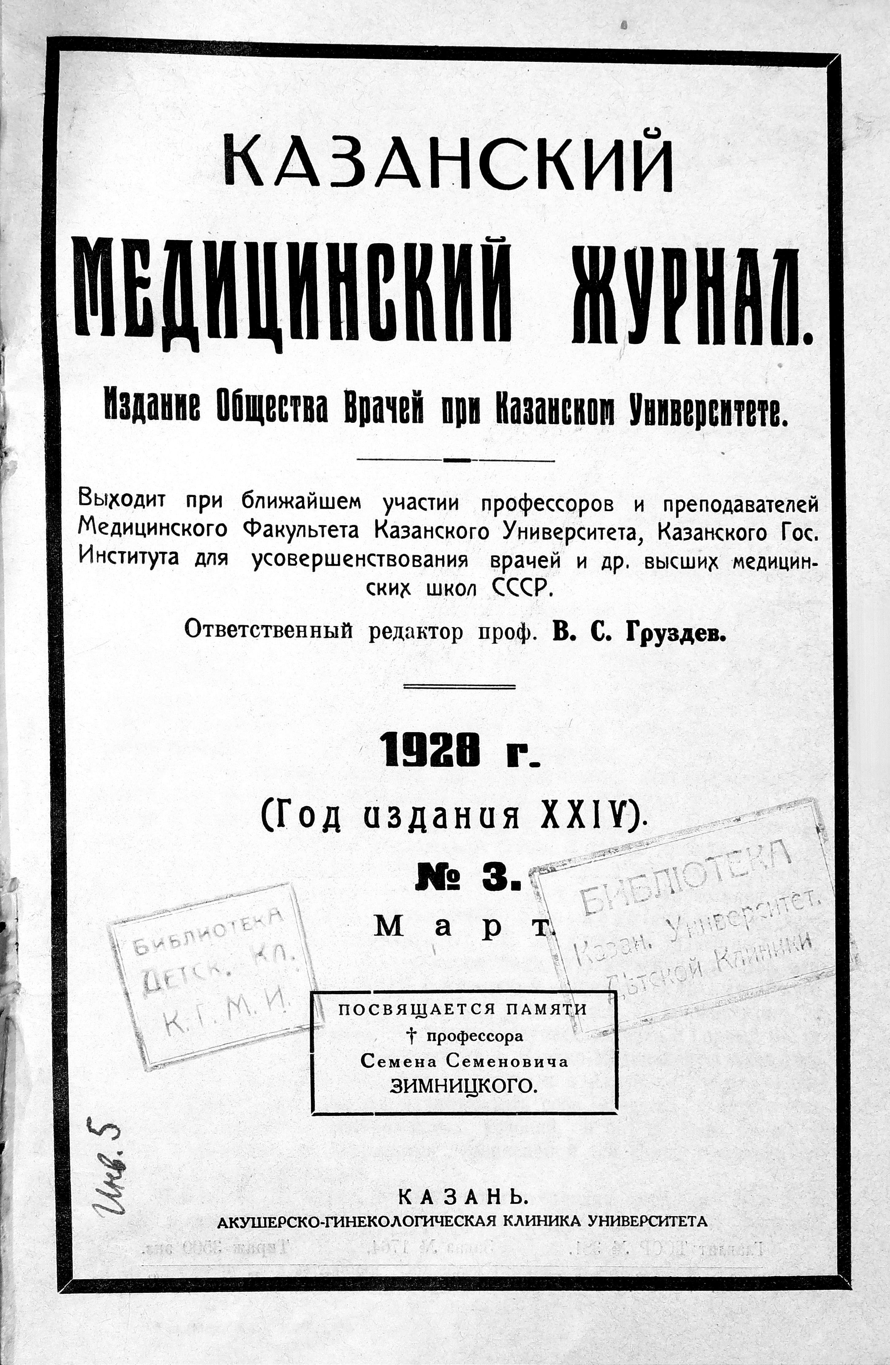 Society of Physicians at Kazan University. Vol. 24, No. 3 (1928)