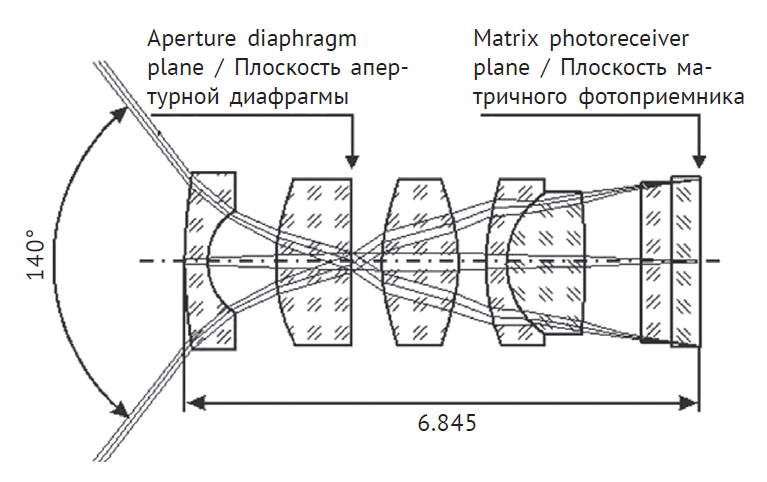 Рис. 2. Оптическая схема объектива видеоэндоскопа