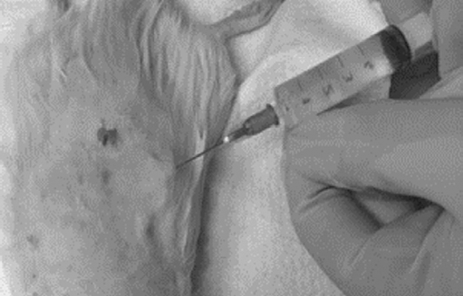 Рис. 1. Этап введения суспензии адипогенных мезенхимных стволовых клеток субфасциально в область ожога кожи III степени