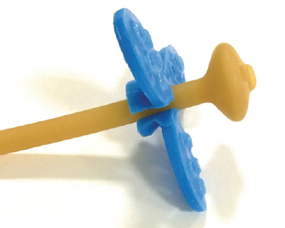 Средства внешней фиксации и пробку можно изготовить из полимеров, разрешенных к применению в пищевой и медицинской промышленности. На кафедре общей медицинской практики Санкт-Петербургского государственного педиатрического медицинского университета разработана наружная прижимная пластинка (рис. 1), которую можно использовать для фиксации различных гастростомических трубок, в том числе силиконовых катетеров.