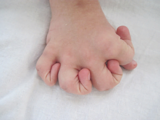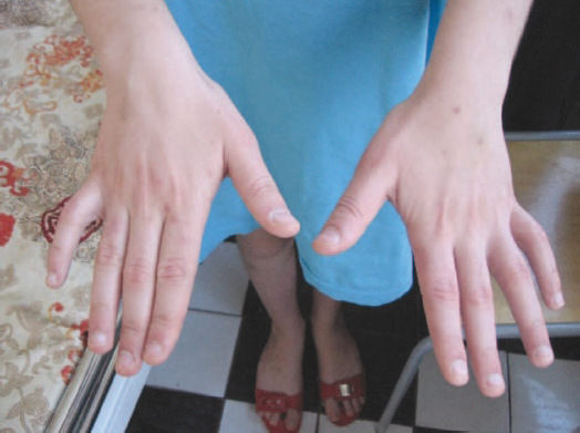 Рис. 3. Внешний вид кисти девочки с мукополисахаридозом IV типа, клинодактилия пятых пальцев