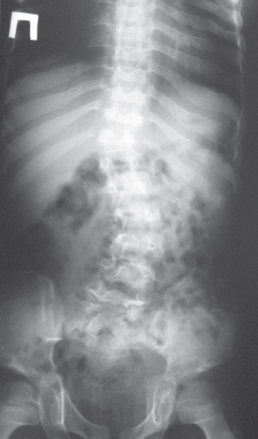 Пациент, мальчик, от родственного брака (отец пробанда двоюродный дядя матери), наследственность не отягощена. Ребенок от четвертой беременности, протекавшей без особенностей (1–3 — м/а), от первых родов. При рождении масса 3300 г, длина 57 см, окружность головы и груди 35 см, по шкале Апгар 7/8 баллов. На грудном вскармливании до 5,5 мес. Привит по календарю. Психомоторное развитие: гулит с 3 мес., сидит с 7 мес., ходит с 1 г. 2 мес., говорит отдельные слова с 1,5 лет, фразовая речь с 3,5 лет. В 9 мес. с инвагинацией кишечника был госпитализирован в стационар, где впервые осмотрен генетиком — выявлено рахитоподобное заболевание, множественные микроаномалии развития, задержка психомоторного развития. Назначен витамин D в дозе 3 тыс. ЕД, который ребенок получал до 4 лет. По мере развития отмечались задержка роста и деформация скелета — с одного года килевидная деформация грудной клетки, с 1 г. 2 мес. — вальгусное искривление нижних конечностей (начал ходить). К 4 годам: выраженная деформация черепа, усиление деформации грудной клетки, «браслетки», «четки». В возрасте 4 лет впервые поставлен диагноз МПС, который был подтвержден в Медико-генетическом центре (Москва) по увеличению экскреции хондроитинсульфата и дерматансульфата, также проведена энзимодиагностика — активность фермента арилсульфатаза В 0,01 нМ/мг/час (норма 42,8–129,8). Молекулярно-генетическое исследование не проводилось.