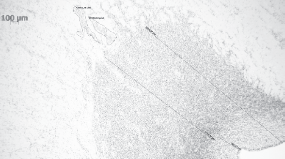 Histology study. The sampling of brain tissue fragments was performed in the germinal matrix of the lateral ventricles in the areas of anterior horn, posterior horn, at the level of the Monro foramen and the frontal lobe, and the caudothalamic groove. Paraffin sections were stained with hematoxylin, eosin, and thionin using the Nissl method. A microscopic study was performed using a ZEISS AXIO microscope, and a morphometric study was conducted using a 3DHISTECH Pannoramic scanning microscope with the Pannoramic Viewer program installed.