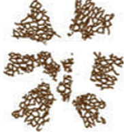 Ретикулярная сеть | Рассеянная однородная сеть с равномерной толщиной и цветом линий. Отверстия сети имеют относительно одинаковый размер. Сеть имеет тенденцию к исчезновению по периферии |